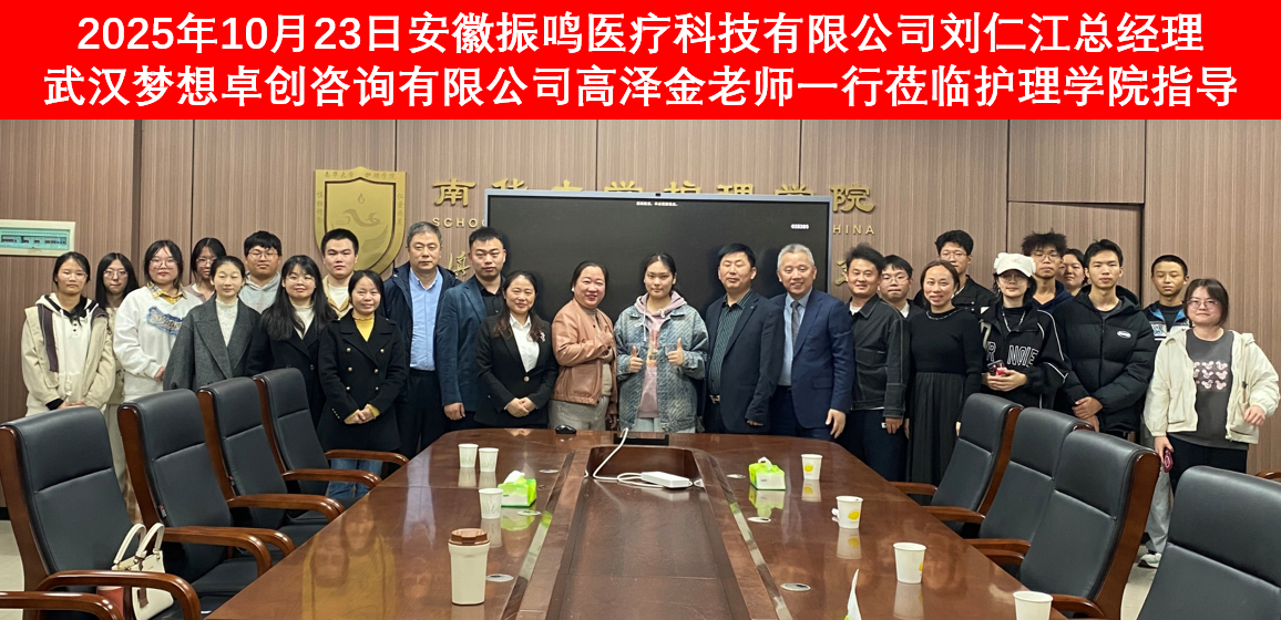 2025年10月23日,南华大学护理学院携手武汉梦想卓创咨询有限公司与安徽振鸣医疗科技有限公司,于南华楼902会议室举行“创新创业深度融合”座谈会。武汉梦想卓创咨询有限公司高泽金和黄祖澳老师,安徽振鸣医疗科技有限公司总经理刘仁江、副总经理朱家辉,护理学院党委副书记王祥、副院长王蓉以及师生代表参会,共谋护理学科创新创业发展新路径。