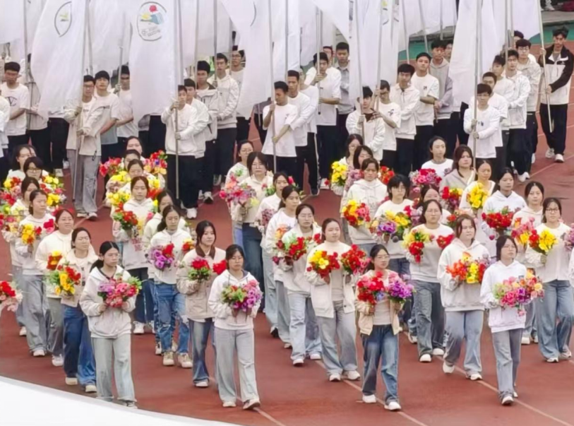 10月31日上午,微风和煦,校园赛场氛围热烈。南华大学2025年校园体育文化节暨大学生田径运动会在红湘校区北校田径场盛大启幕。全体在校校领导、党委委员,各职能部门负责人,二级学院党委书记及师生代表齐聚赛场,共同迎接这场集体育竞技与文化展示于一体的校园盛会。其中,护理学院精心组建的鲜花队与方阵代表团,以饱满的精神状态精彩亮相,成为开幕式上一道亮丽的风景线。