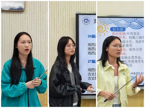 支教团成员谭少琪、曾祖钥、魏晨、彭小燕以“把青春写在祖国大地上”为主题,深情讲述了她们在湘西古丈基层支教过程中的点滴经历。面对支教地简陋的生活环境,他们克服物资短缺、气候不适等困难,用爱心搭建起知识桥梁;课堂上因材施教开发特色课程,课后走访留守儿童家庭,以真诚的陪伴传递温暖与关怀。“基层是青年成长最好的课堂”,支教代表的发言让同学们深刻体会到在奉献中实现自我价值的青春意义。