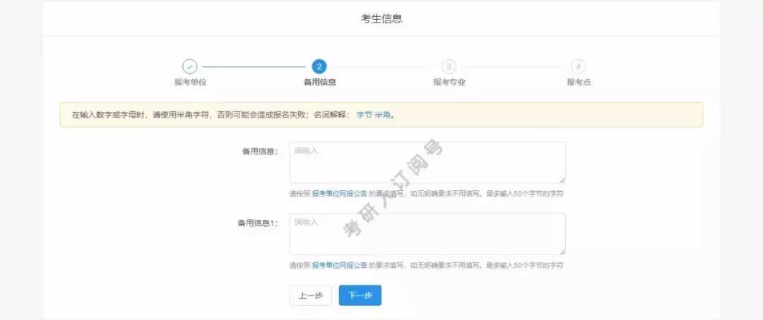 注:备用信息是按照报考单位要求填写,如果报考院校无明确要求,则不用填写。