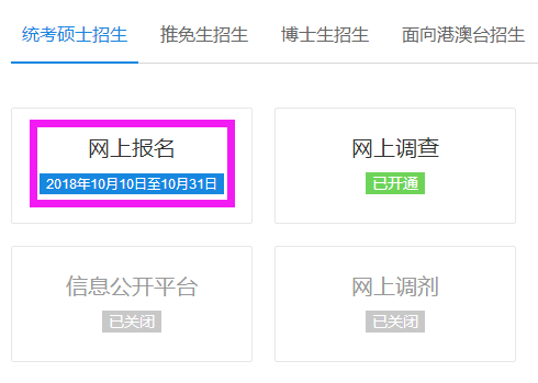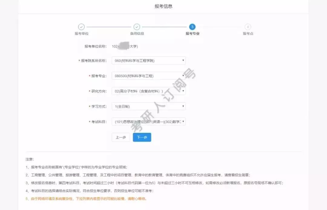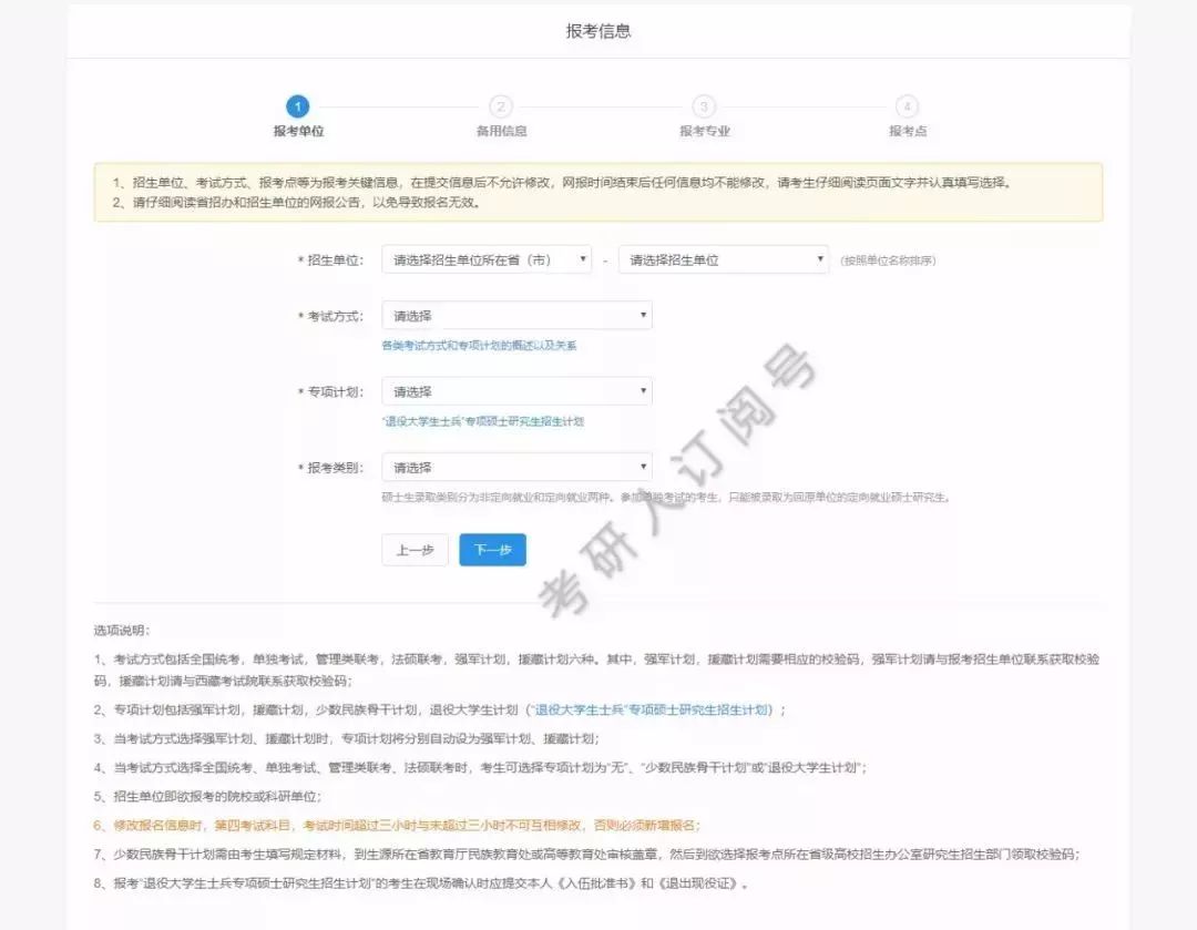 请不要开启有网页拦截功能的软件;招生单位、考试方式、报考点等要慎重选择,一旦生成报名号后则不可以修改;如确实需要修改,须取消已有的报名再添加新的报考信息,已取消的报名信息不可用于现场确认;